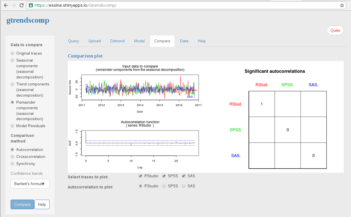 The "Gtrendscomp" web application is designed to compare Google Trends time series. "Gtrendscomp" is